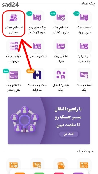 اگه با چک صیادی زیاد سروکار دارین، لطفا اپلیکیشن ساد24 رو نصب کنید.