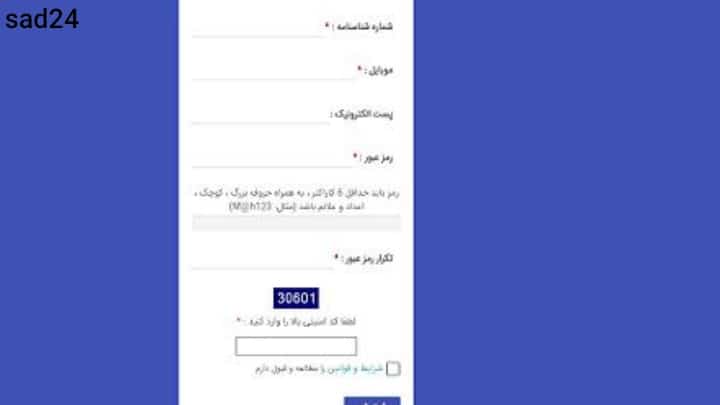 - رمز عبور دلخواه مطابق فرمت سامانه