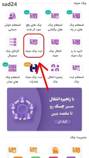اپلیکیشن ساد24 یکی از برنامکهای موبایلی متخصص در زمینه چک صیاد میباشد.